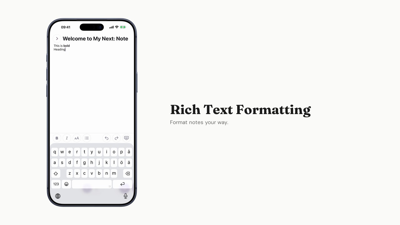 Bold, italic, lists, and more — format notes your way.
